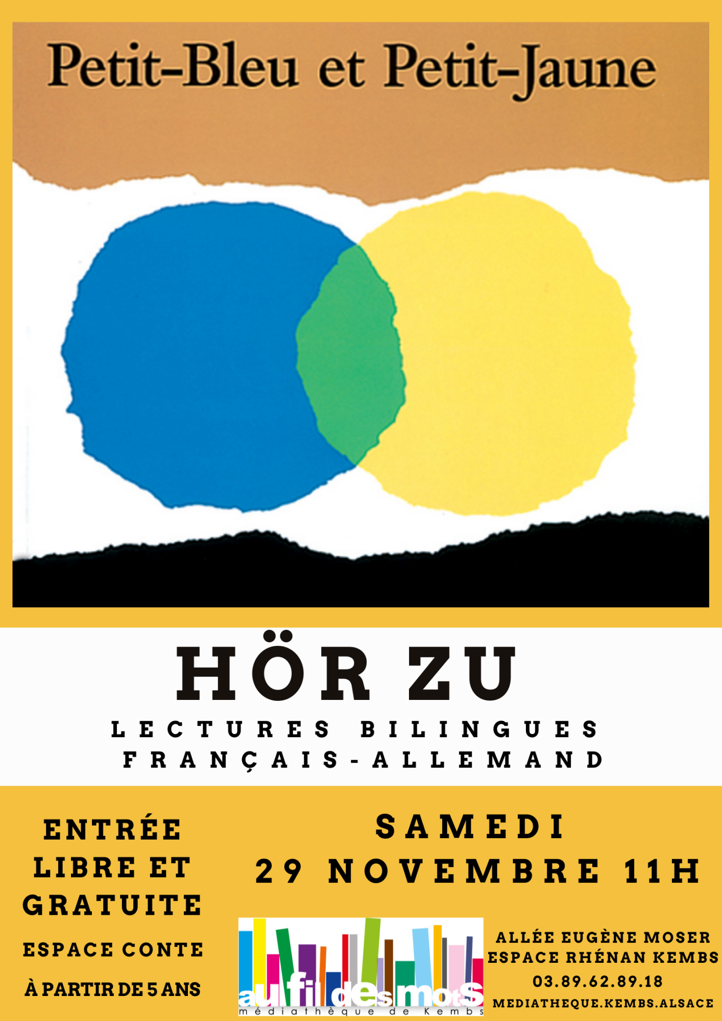 Rendez-vous samedi 29 novembre 2025 de 11h à 11h30 à la médiathèque Au Fil des Mots pour une histoire à deux voix français-allemand.