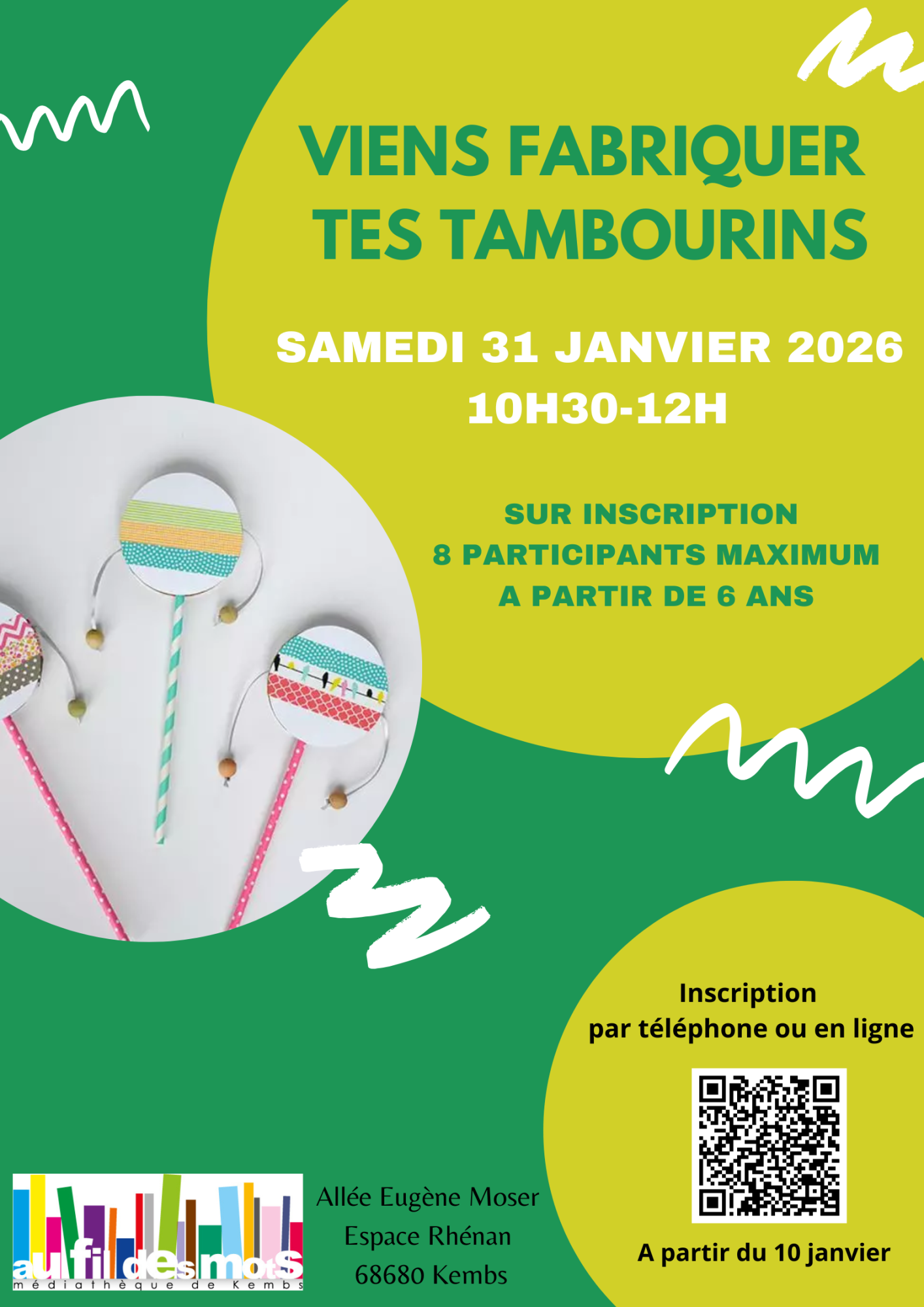 A l'occasion de la prochaine cavalcade, la médiathèque vous invite à fabriquer vos tambourins le samedi 31 janvier de 10h30 à 12h.