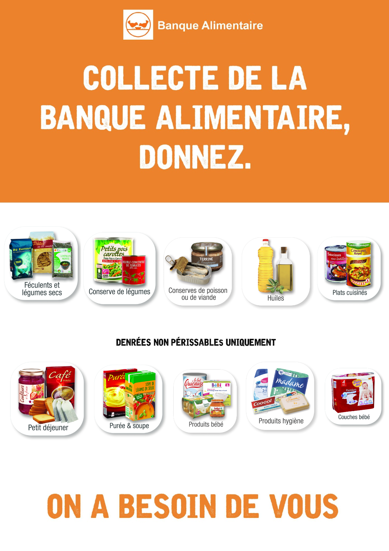 La Collecte de la Banque alimentaire sera assurée par les membres du Conseil des Sages et celui du Conseil Municipal des Jeunes de Kembs les :