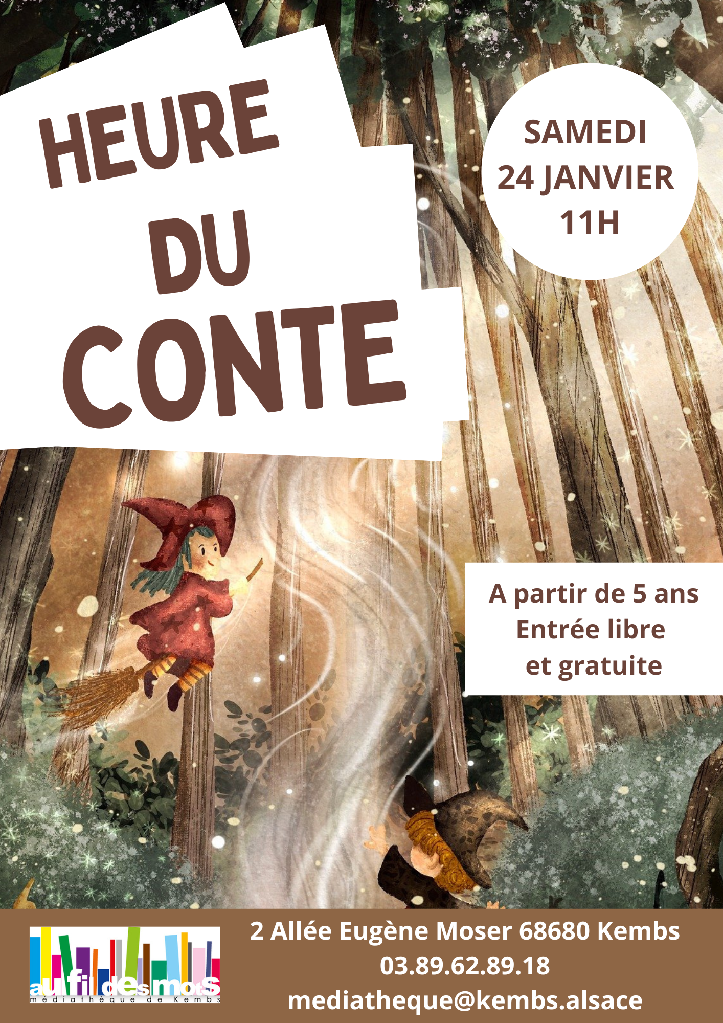 Retrouvez-nous à la médiathèque le samedi 24 janvier 2026 de 11h00 à 11h30, pour l'heure du conte, histoires pour petits et grands à partir de 5 ans.